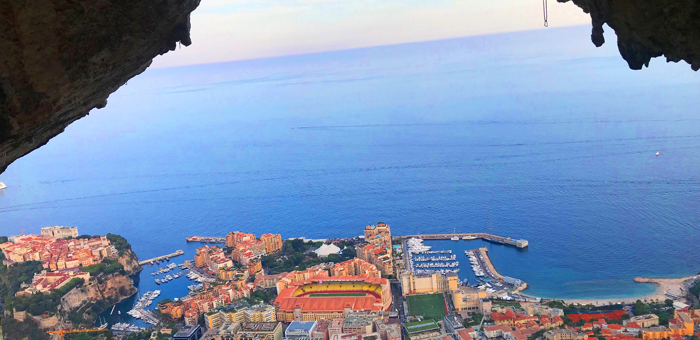 La grotte de Big ben fut un haut lieu de l'escalade dans les années 90. On y trouve tous les types d'escalade dans un espace assez restreint. De la dalle au dévers à colonette, en passant par la traversée du toit de la grotte, façon Spiderman. Ce lieu a vraiment quelquechose de magique et vous offrira une vue imprenable sur Monaco. Prévoyez de bonnes chaussures pour l'approche, et minimum 3 heures pour compléter cette étape. Idéalement prévoyez une journée pour profiter pleinement du lieu et des possibilités de grimpe qu'il peut vous offrir.