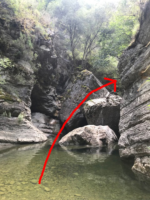 Attention! DANGER DE MORT! Remonter une rivière est une aventure qui peut s'avérer très dangereuse. Soyez extremement prudent ! Consulter la météo, et ne venez que par beau temps. Equipez vous de bonnes chaussures que vous pourrez mettre dans l'eau. A certains endroits, il est plus facile de progresser en se baigant entièrement. Il est cependant possible de contourner toutes les baignades, en longeant les cotés, mais avec quelques passages délicats en terrain de niveau 4.